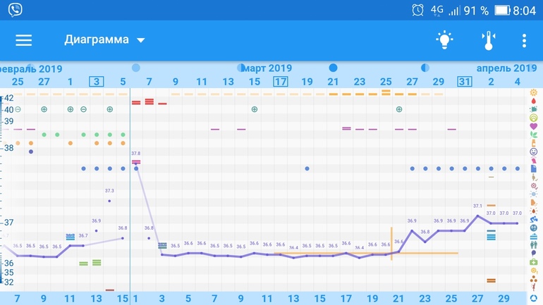 Юлия в Графики базальной температуры 7 лет Мой график беременный? Подскажите! Беременность, признаки по БТ, есть ли шанс? Доброе утро, девочки! Посмотрите пожалуйста мой график! Похож на беременный? Посмотрите еще 20 записей на эту тему Отменить Ответить Юлия Спасибо!!! 04.04.2019 Ответить ИЛИОНА Диагностик Экстрасенс Беременные графики различные бывают. А вам удачи! 04.04.2019 Ответить Маша Здоровая температура второй фазы цикла, это все что можно сказать, о беременности тут сложно судить 04.04.2019 Ответить Татьяна Если О была 25 марта, то ещё рано судить Б график или нет, т.к бт может упасть прям в день месячных 04.04.2019 Ответить БТ при приеме утрожестан и дюфастон увеличилась до 37.5 Мой график базальной t°, цикл от 8 февраля 2019 Чаты Беременных Выберите чат: Январята-2026 Февралята-2026 Мартята-2026 Апрелята-2026 Майчата-2026 Июнята-2026 Июлята-2026 Августята-2026