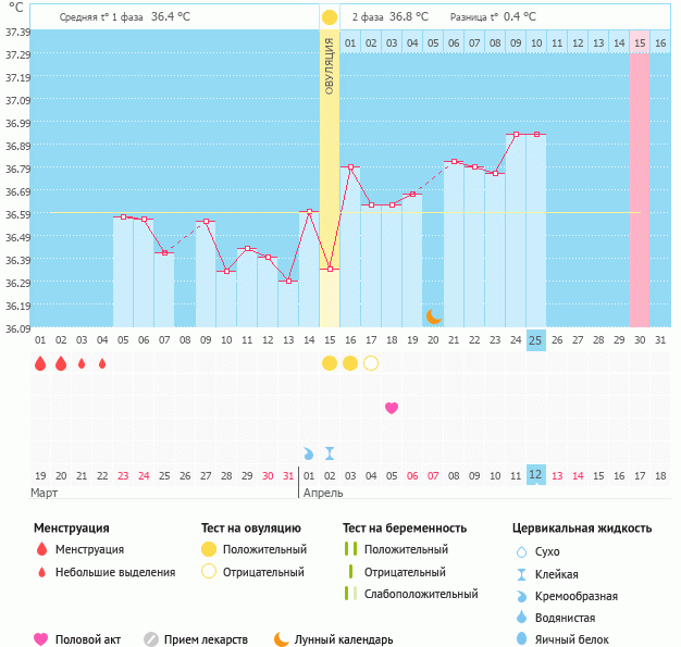 В беременном графике в первой фазе средняя БТ была 36,08 (ректально это было бы около 36,6), а после О БТ быстро поднялась до 36,5 (ректально 37), держалась на этом уровне несколько дней и после ИЗ (который был на 6 дпо) взлетела до 36,9 (ректально это было бы 37,4. Больше я не меряла, а на 9 дпо сдала кровь на ХГЧ и там всё беременно было.