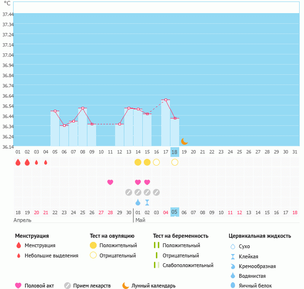 Может быть фолликул лопнул только на 18 день цикла,там понижение температуры у вас,тогда завтра послезавтра должна расти начать.Пусть бт вас завтра порадует😊