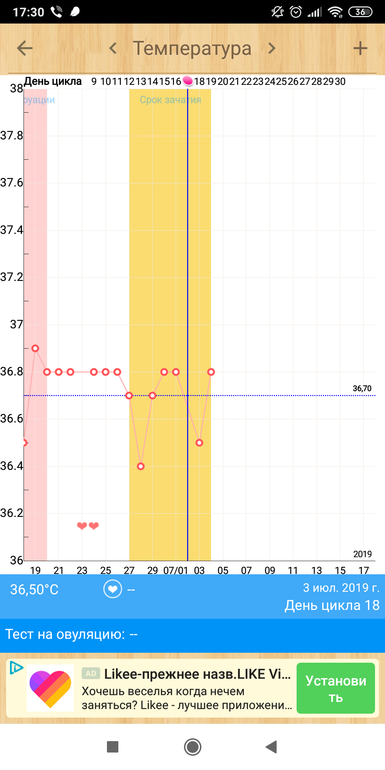 А,а я думала что она была там где температура 36.4... сегодня очень болит низ живота и два дня выделения как белок яичный и чуток белые как крем!!! Я просто ещё не разбираюсь в бт