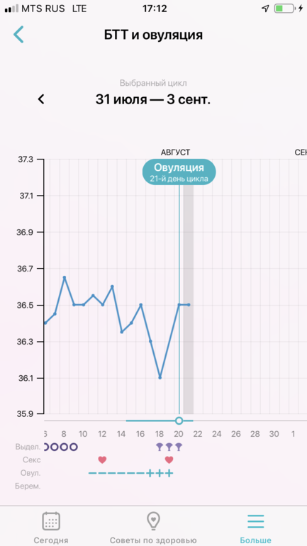 Новый цикл уже похуже(в начпле цикла темпеиатура прыгала, а темерь более менее держится на олном уровне, пока что первая фаза, по узи нет ДФ(((как у тебя???