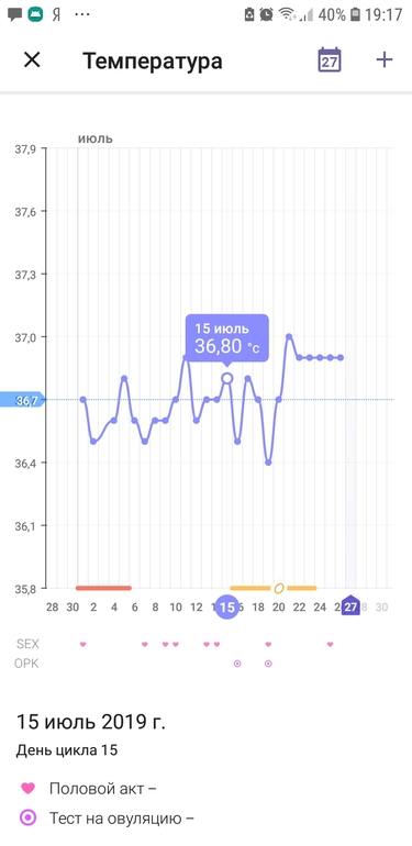 Смотря на свой график я даже начала расстраиваться. И в день когда увидела // на тесте, даже не ждала, проснулась с мыслью, что скорее всего не получилось, БТ была 36,8. Такая БТ для меня совсем низкая, обычно хоть пару дней 37 бывало.