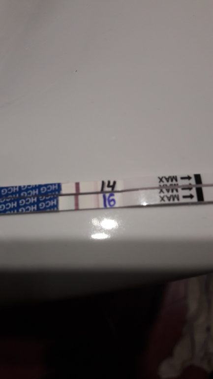 На 16 день полоска ярче, как вас понимаю у меня тоже два раза вб. Первый раз лопнула труба, во второй раз её удалили