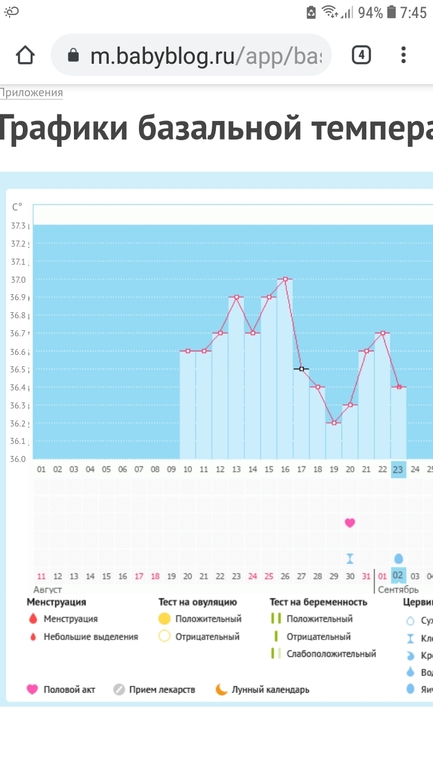 Попытка № 3 . Мой график базальной t°, цикл от 7 августа 2019