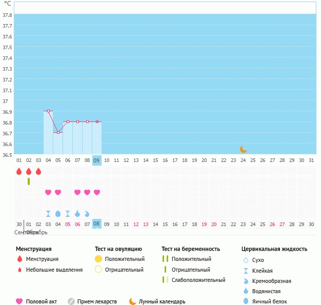 Беременность, признаки по БТ, есть ли шанс?Первый цикл планирования после отмены ОК. Нормально ли, что БТ 4 дня держится 36,8? К сожалению во время М не измеряла БТ, а начала только после них. Не повлияет ли это как-то на график?