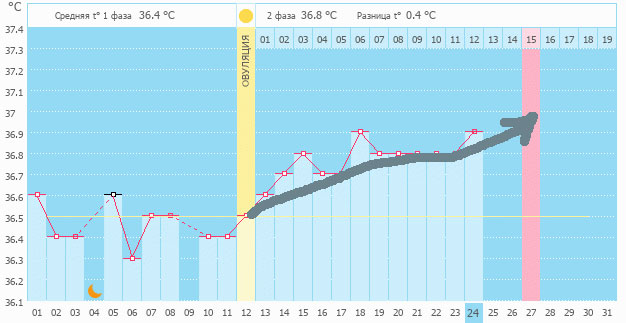 Какой пролёт? Во-первых ДПО только 11-ое. Во-вторых хорошее стремление БТ вверх. Я много беременных графиков пересмотрела и заметила, что в 99 % удачных во 2-ой фазе линия, визуально проведенная по нижним значениям, как бы взлетает. Выглядит так на твоем примере, Ир.