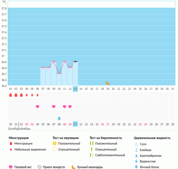 Базалку меряю уже полгода и знаю, что в первой фазе средняя температура 36.7. во второй 37.0 Овуляция стабильно на 12 -13 ДЦ.