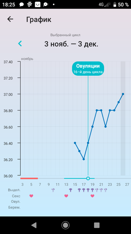 Вплоть до 19 ноября был ЯБ, по ощущениям и симптомам овуляция была 18.11, как и определило приложение.