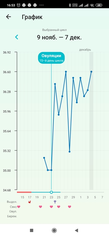 Прежде чем планировать беременность, мы с мужем проверились. Все у нас отлично! В том месяце делала процедуру ГСГ(проходимость маточных труб)-2 трубы проходимы. Анализы в норме. В этом месяце делала фолликулометрию. Обнаружили на левом яичнике доминантый фолликул. 23 ноября овуляция. БТ начала измерять на 13дц. О-15дц
