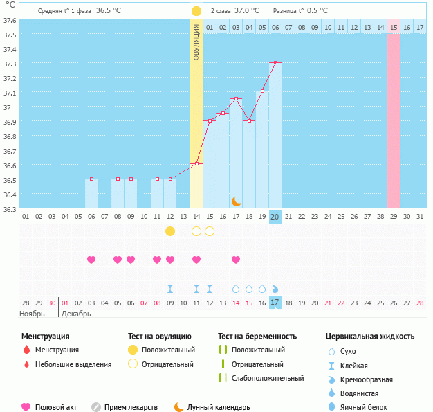 Мой график базальной t°, цикл от 22 ноября 2019 Девочки, как думаете, есть шанс?