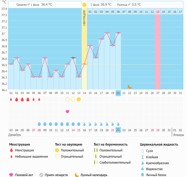 Barbara в Графики базальной температуры 6 лет Мой график базальной t°, цикл от 28 ноября 2019 Менструация и БТ Посмотрите еще 20 записей на эту тему Отменить Ответить Алёна Удачи! У меня тоже поднялась. 22.12.2019 Ответить Мария Томск Еще пару дней и можно тестоманить 21.12.2019 Ответить Татьяна 👍🤞☘☘☘😊🎄🎄🎄удачи! 21.12.2019 Ответить Мой график базальной t°, цикл от 27 ноября 2019 Почему так рано начались месячные? Чаты Беременных Выберите чат: Январята-2026 Февралята-2026 Мартята-2026 Апрелята-2026 Майчата-2026 Июнята-2026 Июлята-2026 Августята-2026