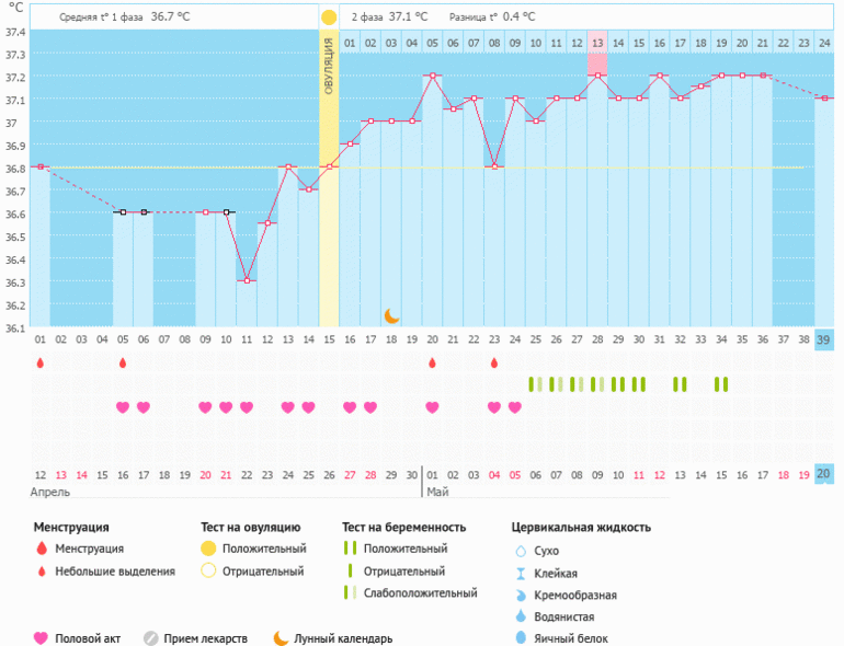 В этот цикл наступила беременность.( моя долгожданная и очень желанная .. все было хорошо. Но на 20 неделе пришлось прервать беременность из за пороков развития. А так, график на мой взгляд был идеален....