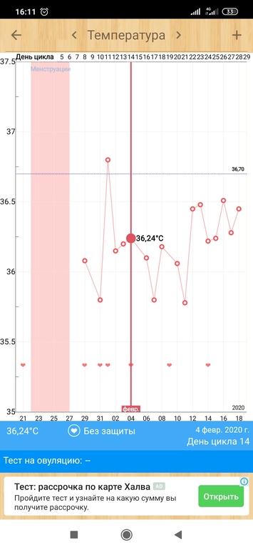 Вроде все понимаю, а надеяться хочется... Мой график базальной t°, цикл от 28 января 2020