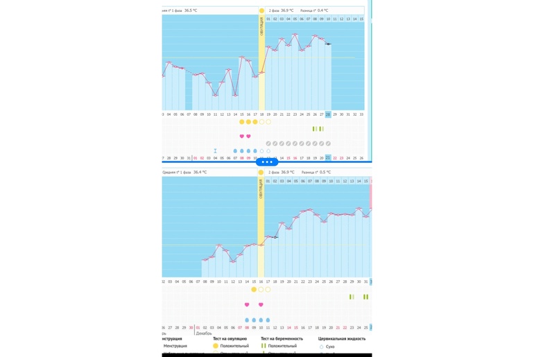 Мой вопрос: могла ли в этом цикле судя по графику быть двойная овуляция? У меня никогда не был положительный тест (я пользуюсь электронным, он смайлики выдает) три дня подряд! Был замечательный яб все эти дни и я чувствовала оба яичника. Могла ли неудачная беременность повлиять на активность яичников? К тому же, я принимаю после овуляции Утрожестан. Полный график - неудачная беременность. Неполный - текущая.