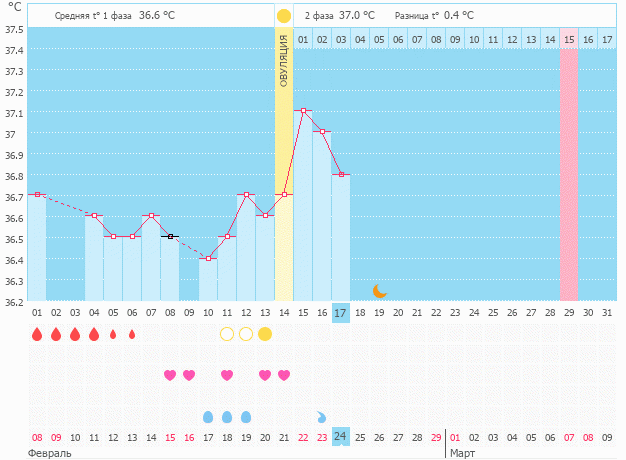 Не нравится мне это падение((( похоже опять ничего не получилось О сама поставила т.к. график не рисует.. Была на узи 13дц ДФ 21мм и эндометрий 10мм трехслойный.. О чувствую точно была У кого-то есть примеры положительных графиков с падением в первые дпо?