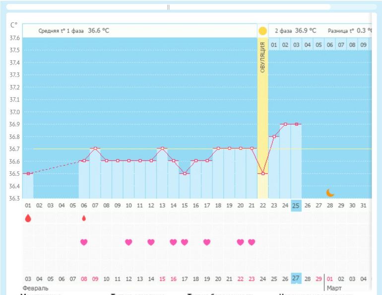 Овуляция была у Вас на 22 дц. С па попали)) теперь будет 2 фаза и пусть в конце цикла будет//