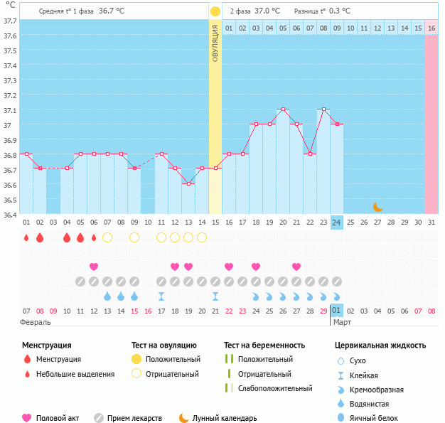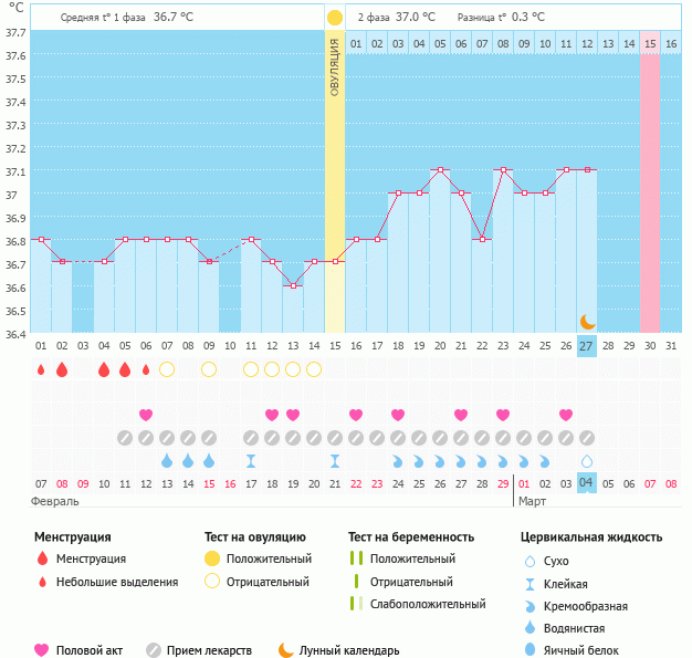 В этом цикле пила овариамин, вазаламин и актовегин, еще был плазмолифтинг на 7 дц, эндометрий вырос до 11,3 мм на 12 день цикла и фоликул был 20 мм уже, перестала пить цитамины, в итоге пила их только 6 дней. Тесты на овуляцию в этом месяце были бледные, и я переживала, как бы не киста. Но на 16 дц на узи сказали, что желтое тело 18 мм и еще не расцвело, эндометрий подсдулся - 9,3 мм (но не 6-7!), в средней фазе секреции. И график на удивление красивый, хоть и температура не особо растет, бывало и до 37,4 доходила. Тесты отрицательные. С 1 дпо появился насморк, а с 6 дпо был жар в голове и горло заболело и еще пока болит, и несколько ночей не могла спать.