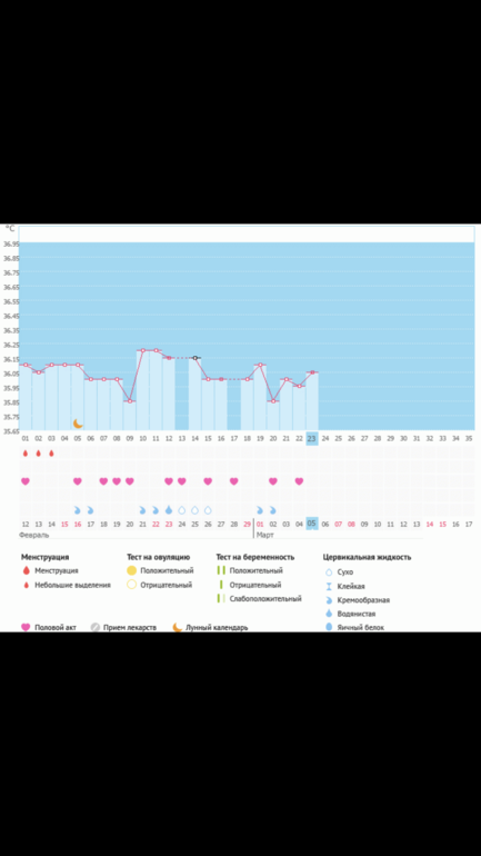 Моя температура пошла вверх. Приложение говорит,что на 22 дц всё-таки была овуляция)