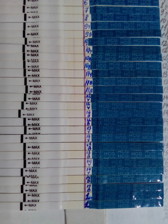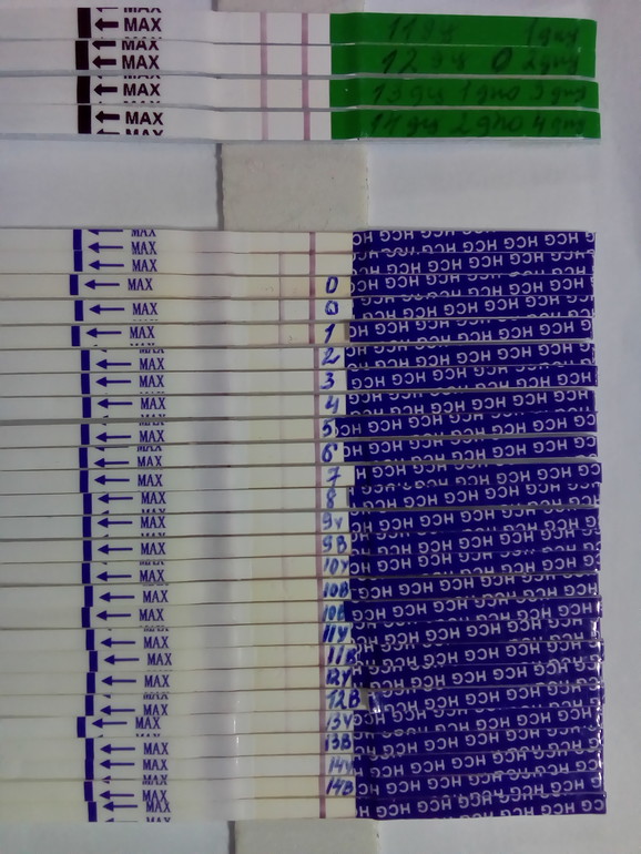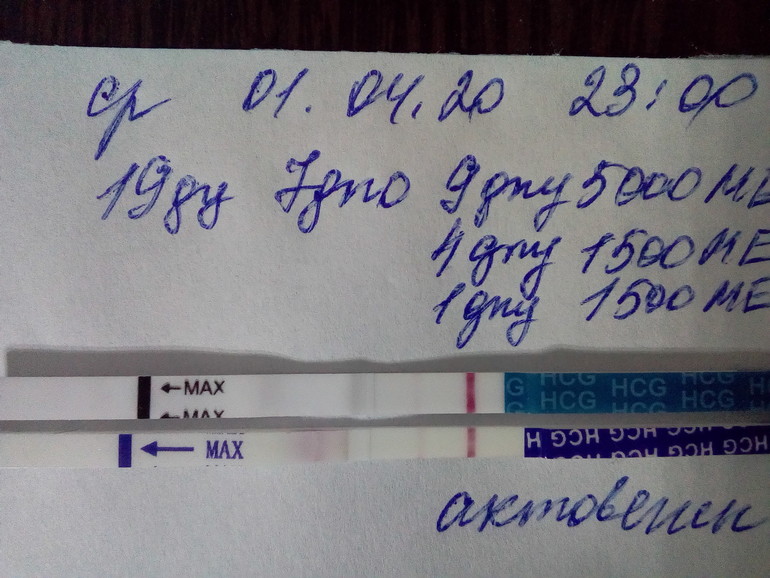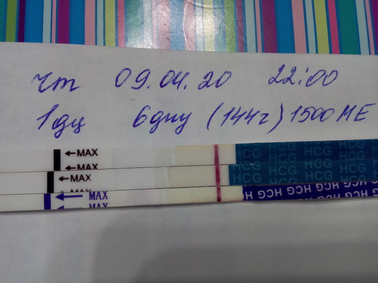 Ниже тесты сегодняшнии на 1дц, призраки есть, выглядят на 6 единиц, как по таблице на 6 день после укола 1500 МЕ