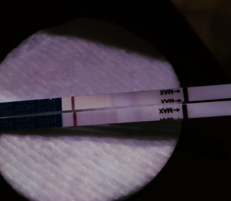 Сначала смотрела и вертела всяко телефон и не видела. У меня ж глаз на это не наметан) а потом присмотрелась и на втором фото, где темнее, на втором тесте ее хорошо увидела! Держим кулачки и ждем динамику!! 🌿
