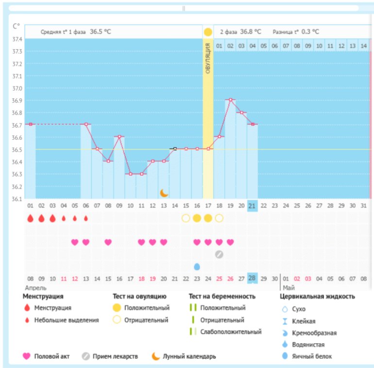 планируем беременность)) Мой график базальной t°, цикл от 9 апреля 2020