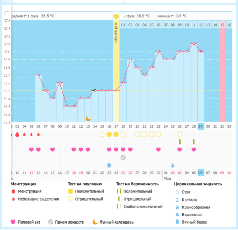 Мой график базальной t°, цикл от 6 апреля 2020 Режим ждуна включен)))