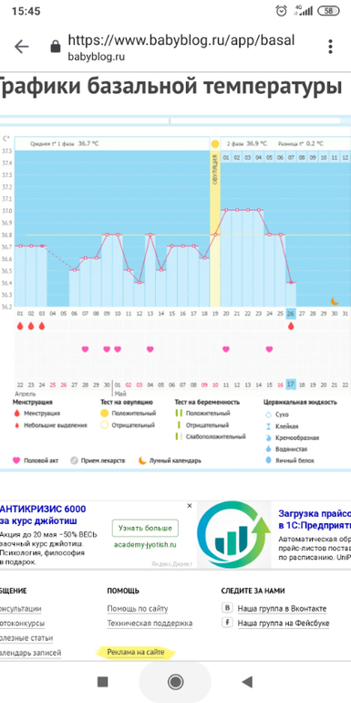 По ЦЖ и по ощущениям я бы сказала, что была О 4.мая (на 13. ДЦ). Плюс маленький сосудик в выделениях, я ещё до начала планирования замечала эти сосудики в середине цикла, Г сказала, что такое бывает, когда во время О лопается фолликул.