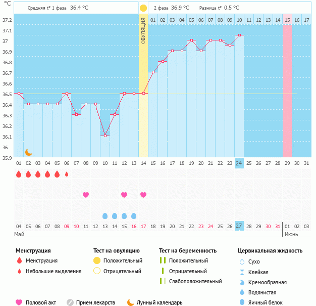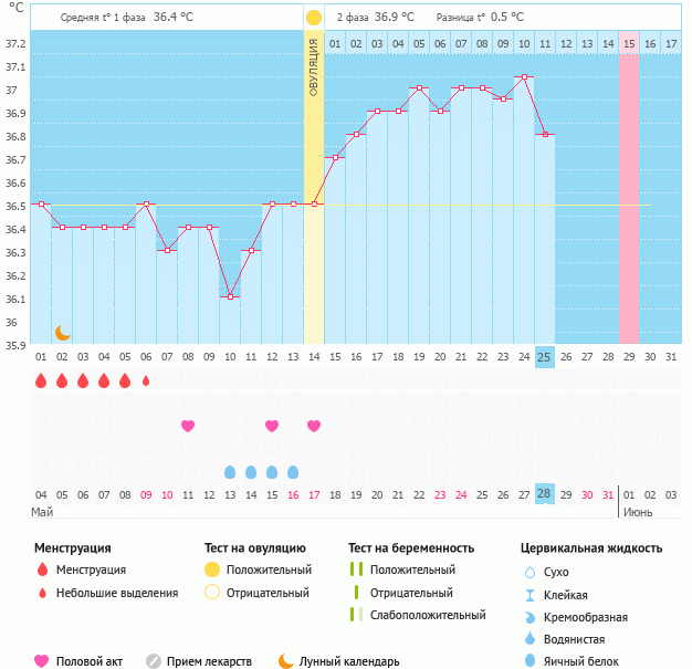 Мой график базальной t°, цикл от 4 мая 2020