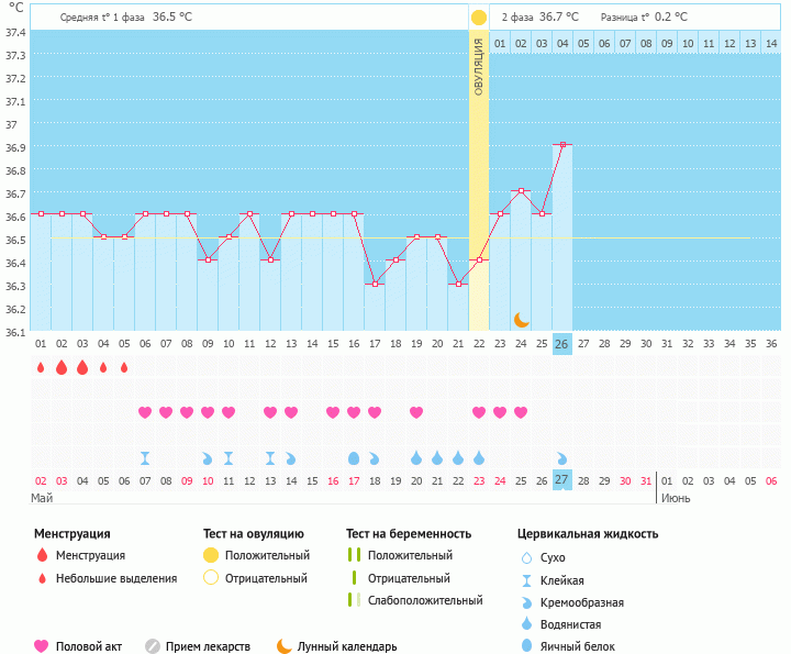 Мой график базальной t°, цикл от 12 мая 2020 Мой график базальной t°, цикл от 26 апреля 2020