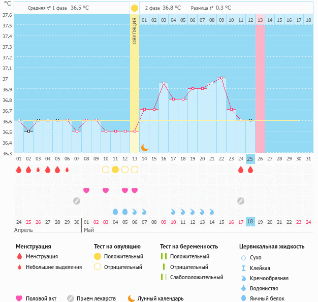Всегда по разному, но в основном падает за несколько дней до М, бывает наоборот поднимается и резко падает.