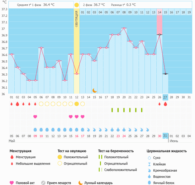 У всех по-разному. У меня падала за день до М где-то на 0.2-0.3, потом еще - до Т первой фазы - и где-то к обеду М расходятся.