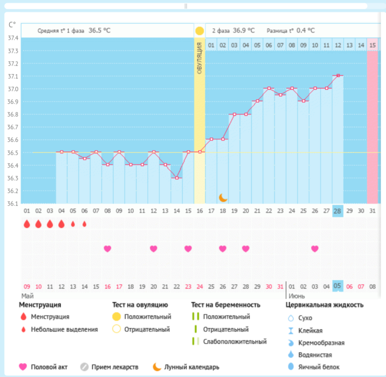 В этом цикле я ее никак решила не отслеживать, будь что будет , примерно знала когда она может быть и вот по календарю и базальной температуре .