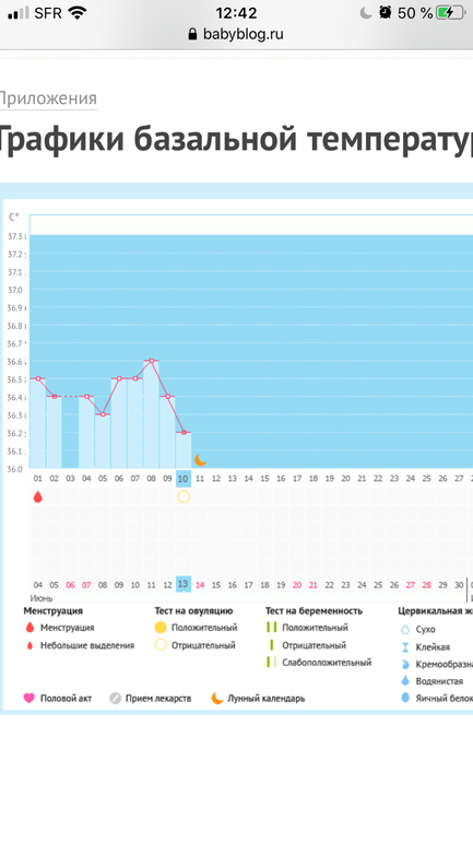 Valentina в Графики базальной температуры 5 лет Мой график базальной t°, цикл от 6 июня 2020 Овуляция, тесты на овуляцию и БТ Посмотрите еще 20 записей на эту тему Отменить Ответить Anna У меня первая фаза как правило 36.3 , в прошлом цикле была бхб, и вот только сегодня свалилась. 13.06.2020 Ответить Valentina Спасибо за ответ! То есть у вас тоже в этом цикле выше немного? Наверно гормоны изза бхб так влияют... Посмтрим как дальше будет. Удачи вам в этом цикле! 13.06.2020 Ответить Anna Спасибо ! И вам тоже )) 13.06.2020 Ответить Мой график базальной t°, цикл от 17 мая 2020 Была ли ? Чаты Беременных Выберите чат: Январята-2026 Февралята-2026 Мартята-2026 Апрелята-2026 Майчата-2026 Июнята-2026 Июлята-2026 Августята-2026