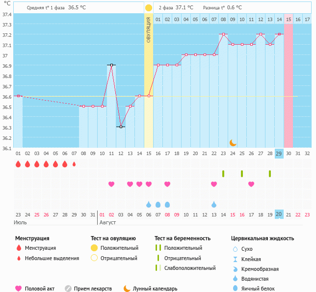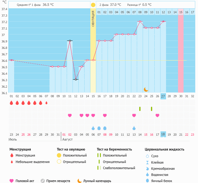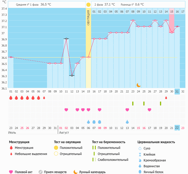 Вчера тест предательски был чист😂 и я решила без задержки их больше не делать. Сегодня БТ 37.2 и график выставил разницу температур 0.6. Завтра день Х