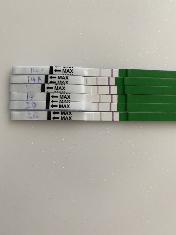 Люба, оценивайте тест мокрым, продолжайте тестирование, пока все одинаковые не положительные, либо пик ЛГ прошёл раньше, либо ещё будет, ну про ПА не забывайте, удачи!