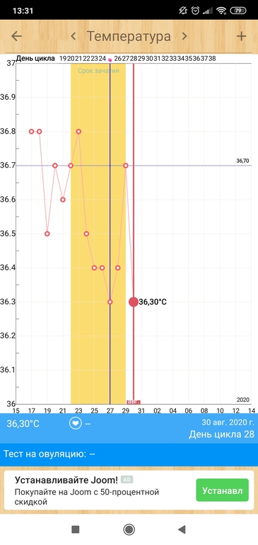 Овуляция, тесты на овуляцию и БТДевочки, всем привет! 3 августа был МА. Сегодня 28 день после. Начала мерять БТ, когда полностью закончилось кровотечение, всегда в 6 утра.
