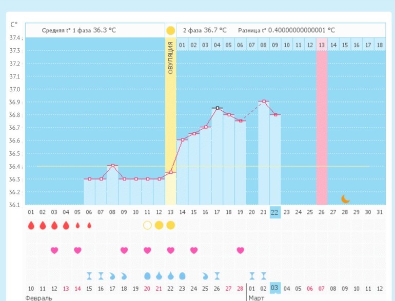 А у меня в прошлом цикле по графику БТ И О была,что подтвердилось на УЗИ(20 ДЦ, наличие ЖТ-19мм на месте бывшего ДФ,и эндометрий 14мм),и ИЗ (имплантационное западение) было на 6 ДПО,как раз в этот период ТТ держалась 37.1-37,2 ,нос заложило...так надеялась ,что получится,но ...БТ стала снижаться до 36,8.в целом по графику повышение на 0,2-0,4.вот хочу в этом цикле на прогестерон сдать,допускаю недостаточность ЖТ и б*б.В итоге-прошлый цикл пролет..