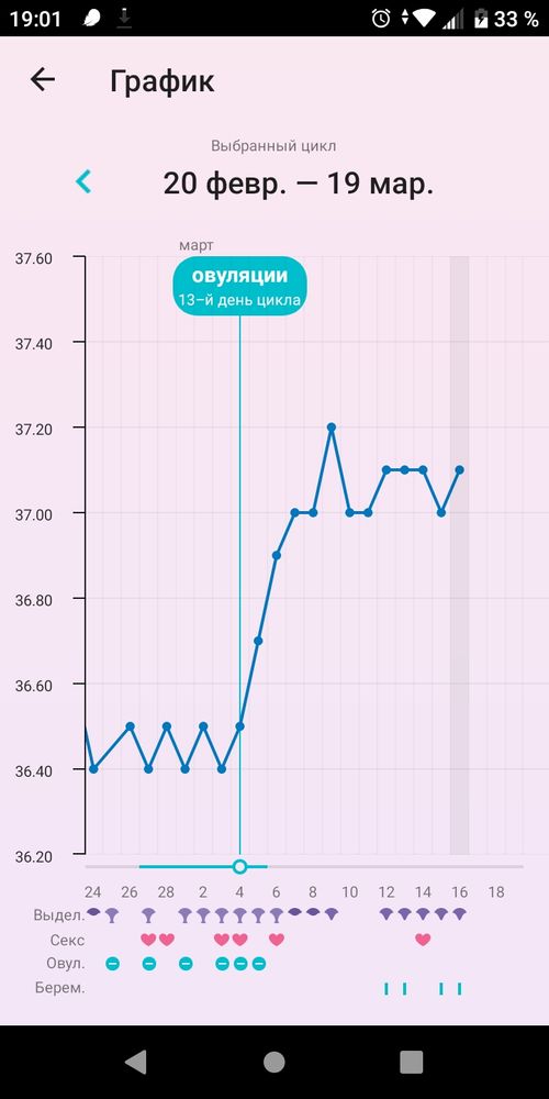 Я так никогда не считала. Пока не пришли М шанс есть всегда, даже с моим забором во 2й фазе😉 и это самый красивый график обычно цыклы с спкя по 40-60 дней без дюфа и как правило без овули🤷♀️. Если интересно полную историю того времени можно прочесть в моем дневнике