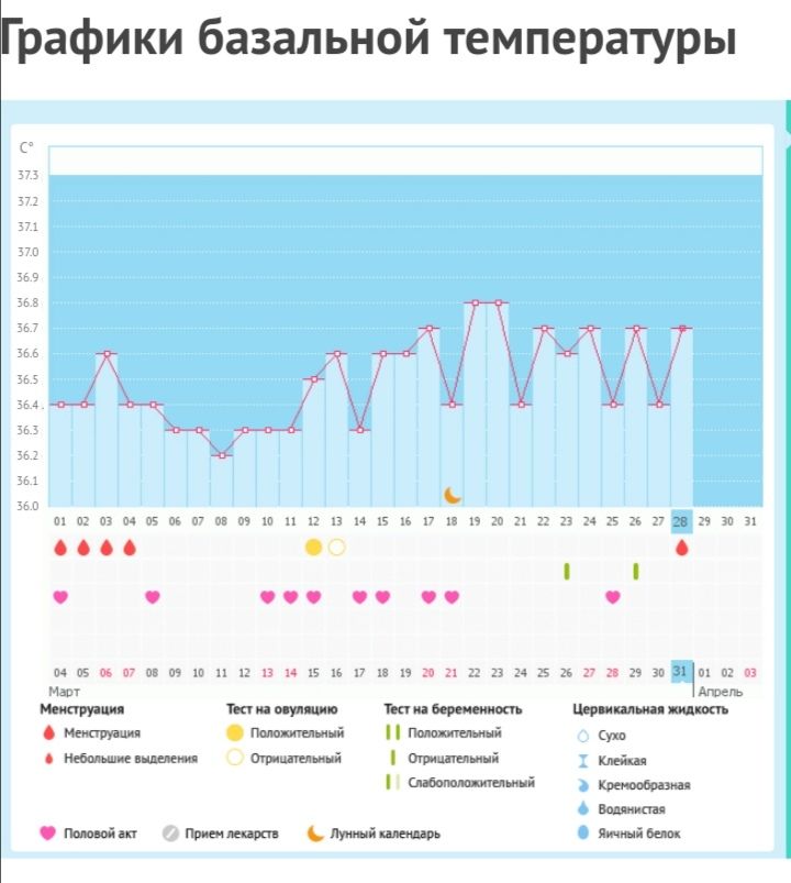 Мой график базальной t°, цикл от 31 марта 2021