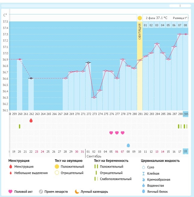 Ура! Мой график беременный!Наконец таки и я увидела 2 полоски! Это мой первый график БТ, на нем четко увидела западение на 5 дпо (15.09), после ИЗ через 2 дня вечером на 7 дпо(17.09) увидела слабую вторую полоску, утром второго дня тест еще был кристально чист! ИК не было.