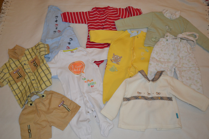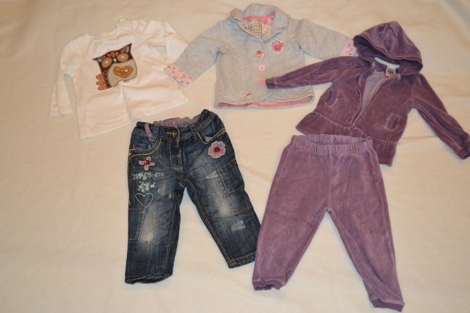 4 боди, 12 кофточек, 4 тонких штанишек, 6 слипов, велюровый костюм, велюровые штаны.