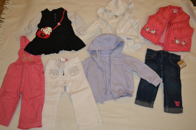 Туничка(с собачкой), 2 кофты с капюшоном, 2 джинс(1 новые!), жилетка, штанишки с грудкой.