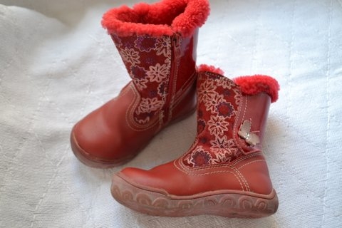 4. Сапожки красные - в идеале(носили очень мало, только в мокрую погоду) кожа на натур. меху. Размер 25. Цена 500р.