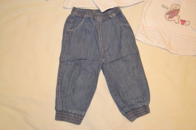 14. Джинсы Дисней(тоненькие) - 12-18, кофта с микки - 18-24(есть пятнышко), кофта "оранжевый верблюд" - 86см. Цена 200р.