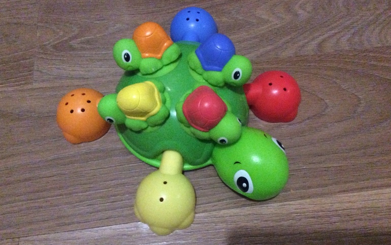Возможные игры: сортировка геометрических фигур, сортировка по цветам; если ходите в бассейн, можно брать маленьких черепашек с собой, прикреплять на дна бассейна, чтобы ребёнок за ними нырял.