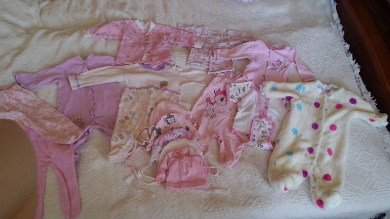 Одежда для девочекДетские вещи 0-3месяца в отличном состоянии без пятен,нигде не порваны , входят 3 комбезика,1 слип, 1 полукомбенизон, 2 кофты, 2 распошонки,2 штанишек,3 носочков,6 шапочек,и 1 теплый комбенизон!