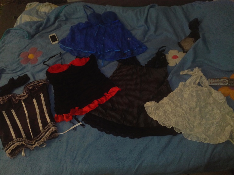 У меня много и разного на разные случаи жизни. Есть корсет "под грудь", есть платье -сеточка с открытой спинкой (имитация вечернего, но из сеточки), пеньюары, есть именно комплекты белья, который подбирал муж, у меня даже хирургический-эротический костюм имеется (полная имитация настоящего с небольшими, не сразу заметными, особенностями...да, если не знать в чем "фишка", то в нем по больнице можно разгуливать и никто ничего не заметит).... и это не полный список))))