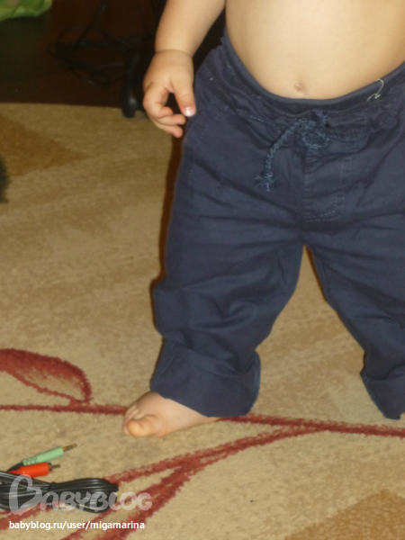 Штанишки размером 2-3 года. Вот так они сидят на нашем годике и ростом где-то 76 см.