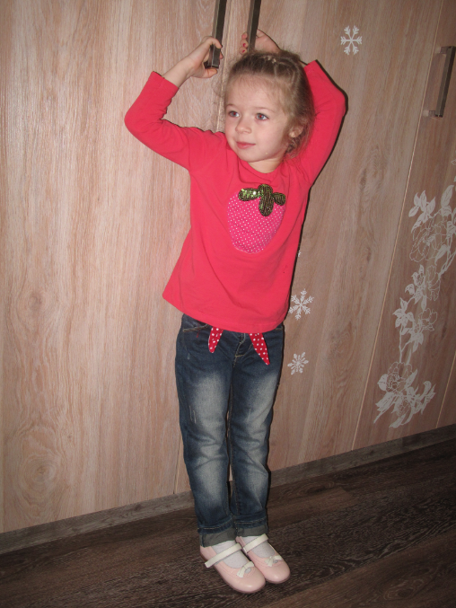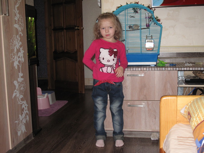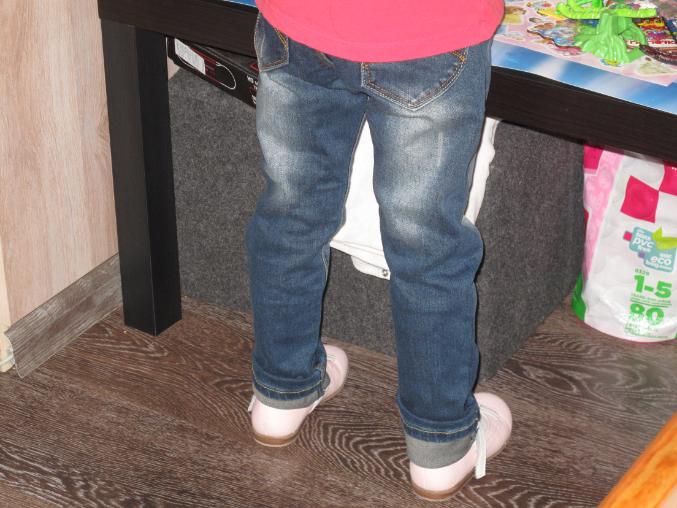 видимо мы слишком худенькие(я знала что в длинну нам будет длинновато ,и так хотела чтобы подворачивать..но не расчитала что в попе и талии нам будет так много...