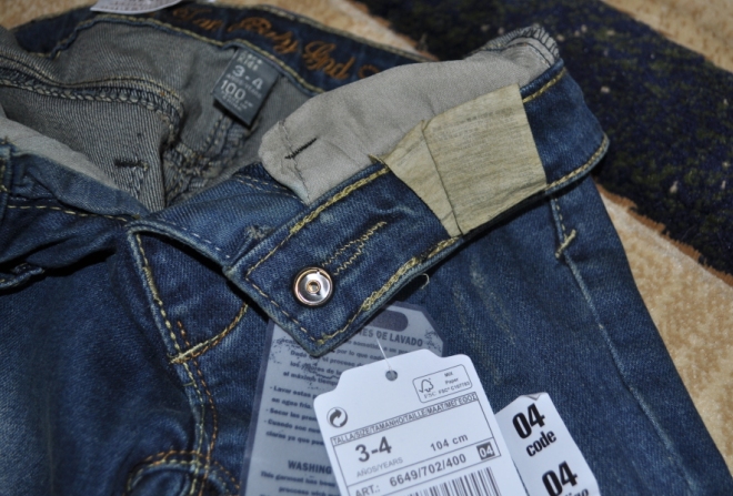 Сегодня забрали наши джинсы "ЗАРА" 3-4 года....так их ждала....вобщем,что хочу написать....бракованные пришли!!!!На первом фото невооруженным глазом видно,что левая сторона ширее правой + еще одна штанина длинее другой сантиметра на полтора....кособокие(((